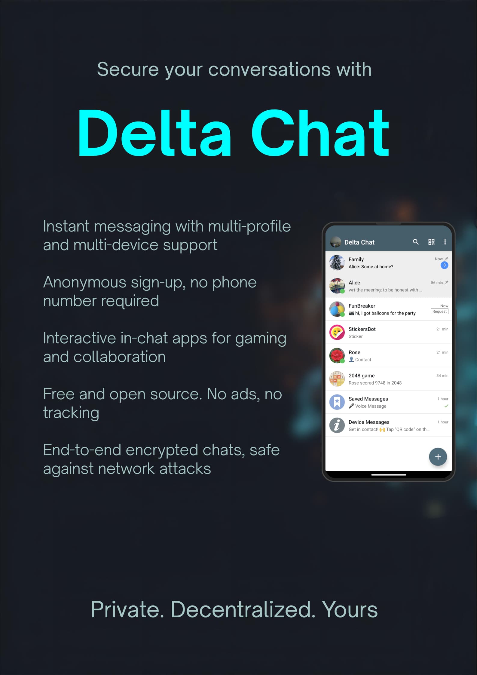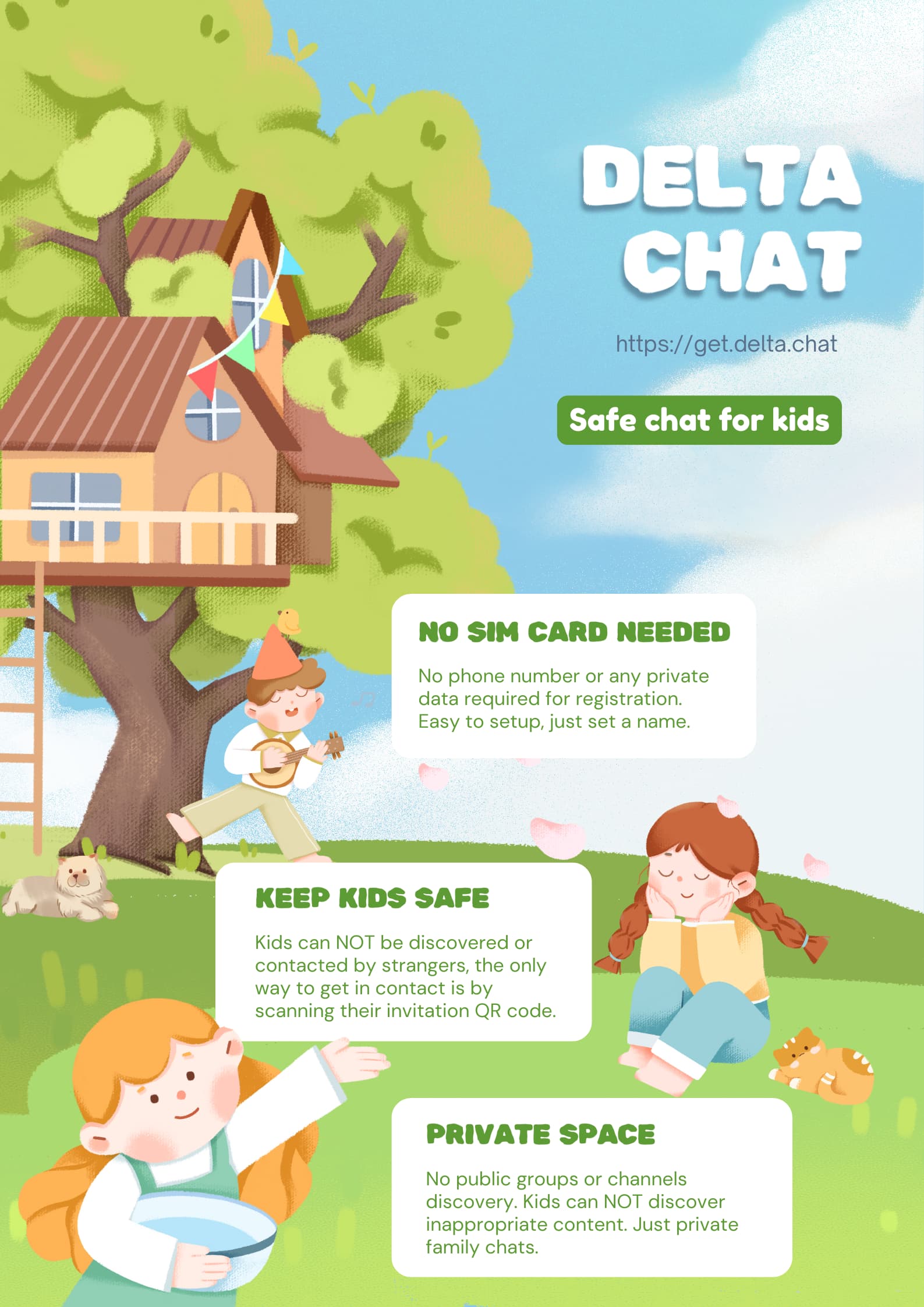 here you have some Delta Chat posters to help you promote Delta Chat and convince your family and friends to install it. The usefulness for kids is a strong point that usually helps a lot to make the family migrate!