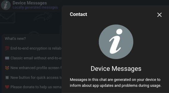 In Delta Chat, where do those so-called “Device messages” come from?