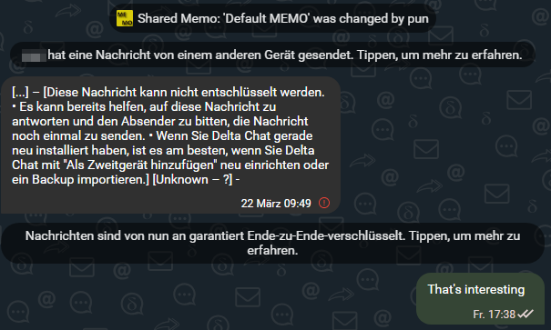 I have updated DeltaChat on 28.3., which was after this message was received, so I guess it could still be in the message list from the 1.x client.