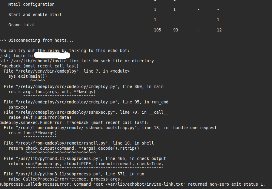 After that, I run scripts/cmdeploy run to update the server. I got the following error: