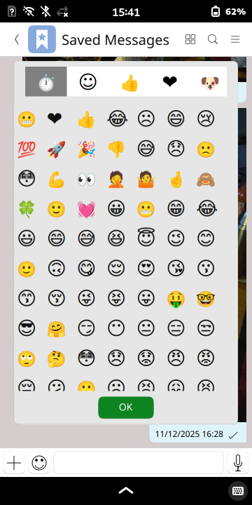 Out-of-the-box, DT does not use fonts-noto-color-emoji as the default for emojis, so there is a lot of tofu (non-rendering characters; “noto”=“no tofu”) and the emojis that do render are black-and-white. But other apps on my Mobian system consistently do use color Noto for emojis, so my workaround is copy-pasting emojis I am sent into a text editor to see what they are. A bit kludgy but it works.