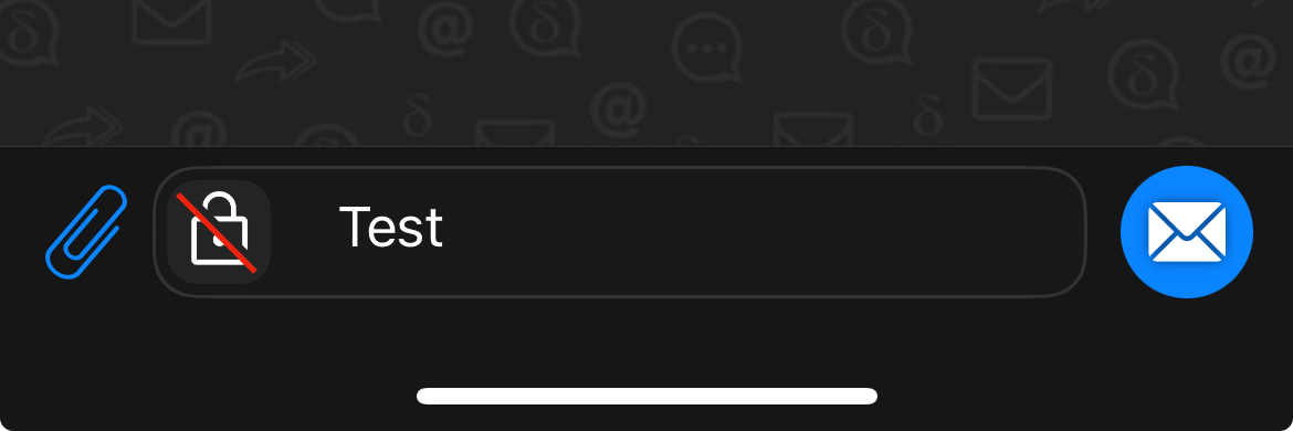 An icon with a crossed-out padlock on the left side of the input field, like in Firefox, and a send button with an envelope instead of a paper airplane icon indicate that messages will be unencrypted.
