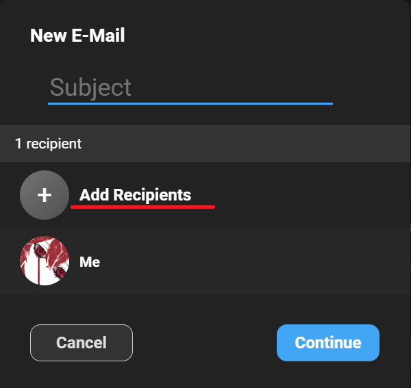 Hello everyone. Recently, I wanted to send a movie that I really liked to my friend. I remembered a message created by my device at startup, which said that I could send a message without encryption, and I wanted to use that option since it would obviously be much faster considering how big the file is (572 MB). But when I tried to do it, it turned out that the “New E-Mail” function works like a group chat, but for some reason I can’t add anyone to it. I would like this to be fixed, or at least for someone to tell me what I’m doing wrong.